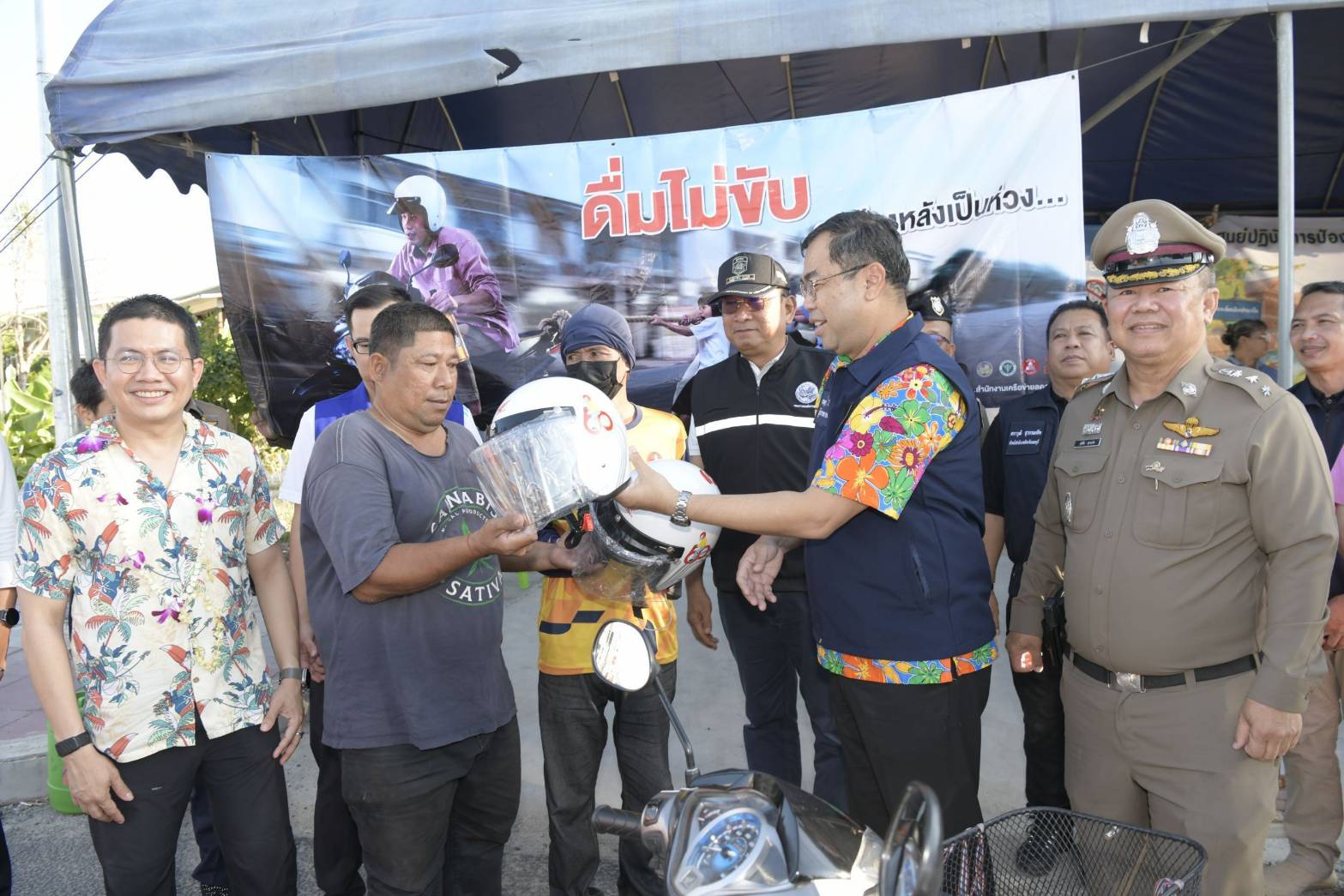 นายเชษฐา โมสิกรัตน์ ผู้ว่าราชการจังหวัดนนทบุรี เน้นย้ำว่า การมอบหมวกนิรภัยในวันนี้เป็นส่วนหนึ่งของมาตรการเชิงรุกที่ต้องการลดความสูญเสียทางถนนอย่างเป็นรูปธรรม โดยขอความร่วมมือให้ประชาชนปฏิบัติตามกฎจราจรอย่างเคร่งครัด “ดื่มไม่ขับ สวมหมวกนิรภัย 100%” เพื่อให้เทศกาลสงกรานต์ปีนี้เป็นเทศกาลแห่งความสุขและความปลอดภัยสำหรับชาวจังหวัดนนทบุรีและผู้ที่เดินทางผ่านพื้นที่ทุกคน